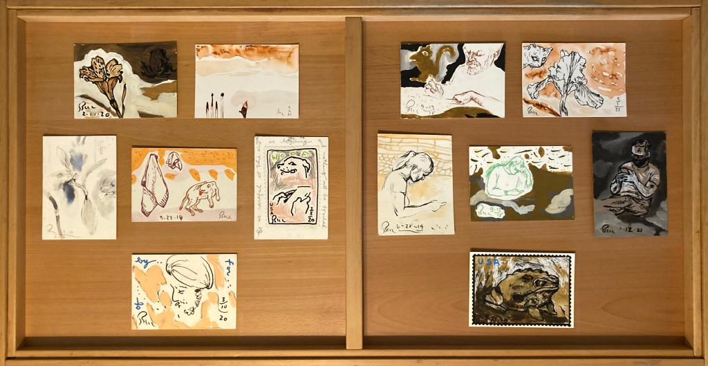 Thai Bui’s drawings are engaged and enthusiastic. Animal embraces, burnt matchsticks, passengers immersed in their cell phones, ephemera, Bui’s drawings are considerations of fleeting gestures. These drawings are often produced while in transit or in between moments, full of observation as well as amused invention.